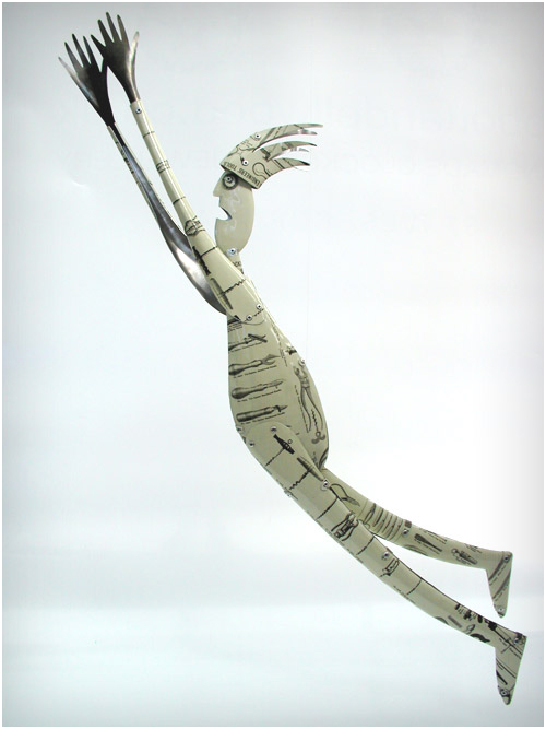 Hand printed figurative metal sculpture | Mixed metals, found objects